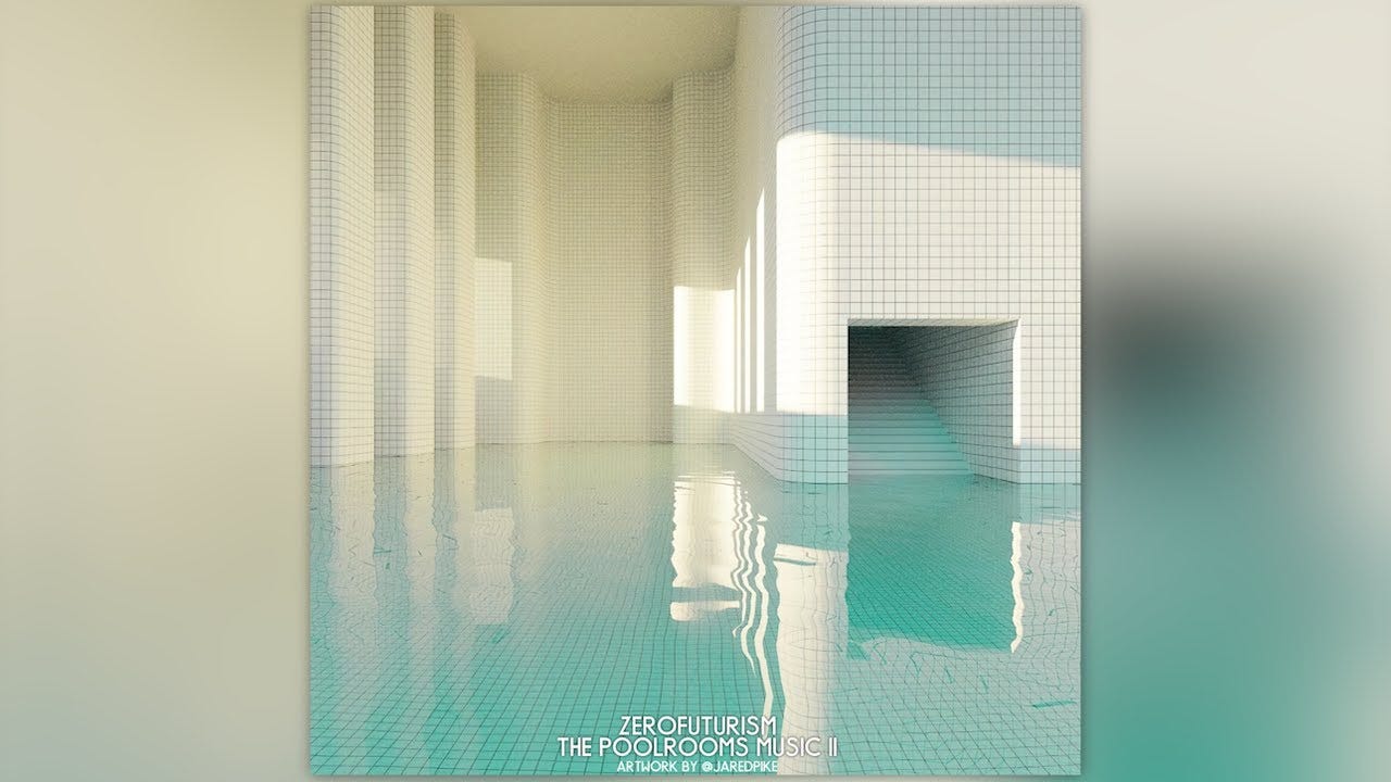 The YouTube channel Zerofuturism might be onto something with their gaming-flavored ambient mixes. These mostly consist of slowed-down edits of original music or songs pulled from Silent Hill OSTs, sometimes running for as long as four hours. They anchor their music in distinct spaces, using thumbnails that depict desolate hospitals or fictional locations with names like "the Verdant Complex." While video titles like "FOREVER IN 2006 サイレントヒル" are easy to parse as lingering artifacts from the vaporwave craze of the 2010s, titles like "THE POOLROOMS" require a bit more explanation.