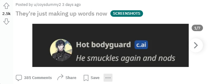 It’s one thing to read that AI chatbot site Character.ai has 100M monthly visits and claims wild engagement numbers (two hours on average for users who send a message). It’s another thing to look at the site’s 850K-member subreddit and see that it has a real, memey community that seems to be in high school and is obsessed with Scaramouche from Genshin Impact. The top posts are mostly messing with the AI (CAI’s model, built by ex-Google devs, seems to have decent yes-anding capacity), watching it build absurd metaphors and invent words like “smuckle,” and remarking on the horniness of the CAI scene.