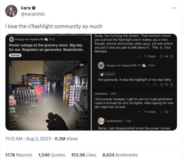 But posts like this one from r/flashlights are a reminder that some parts of the site have still got it. It’s the epitome of the sweet and harmless nerdiness that binds many subreddits together, and serves as the latest dispatch from “Good Reddit,” a hazily defined but heavenly place where like-minded geeks talk shop about their intensely niche interests forever.